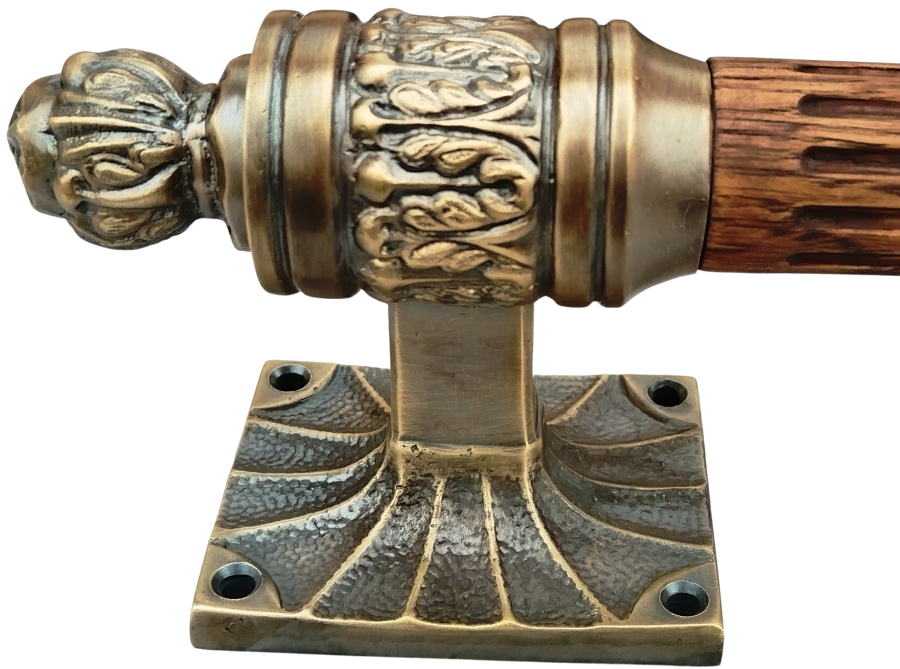 Только сейчас элементы не из алюминия, а из латуни. Что, безусловно, придаёт ценность и красоту дверной ручке. Как и для других дверных ручек, латунь может быть матовая, полированная, патинированная «под бронзу».
