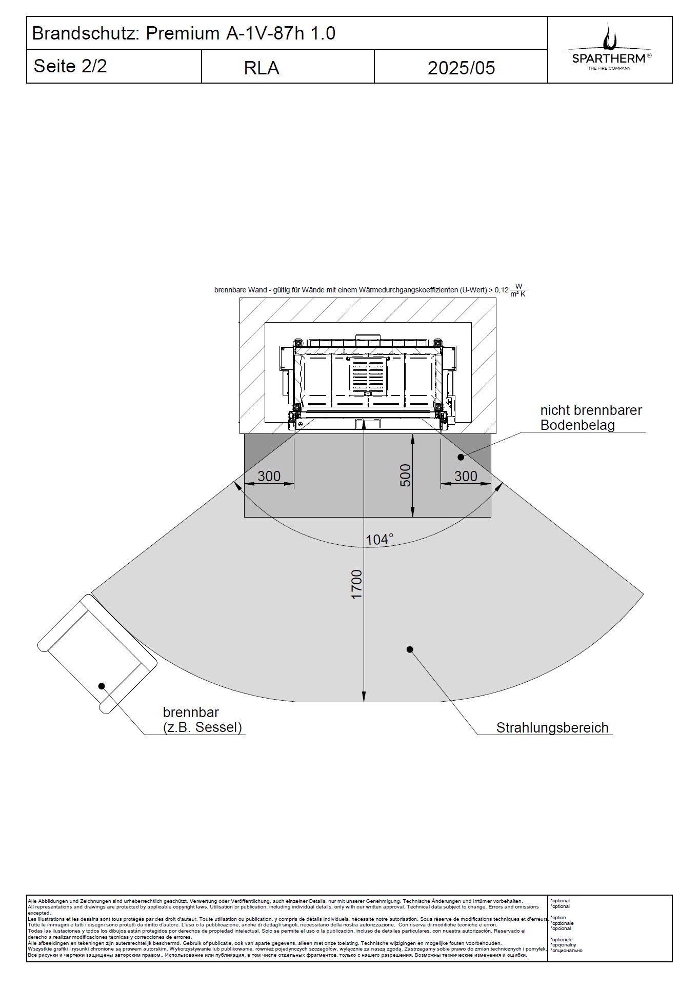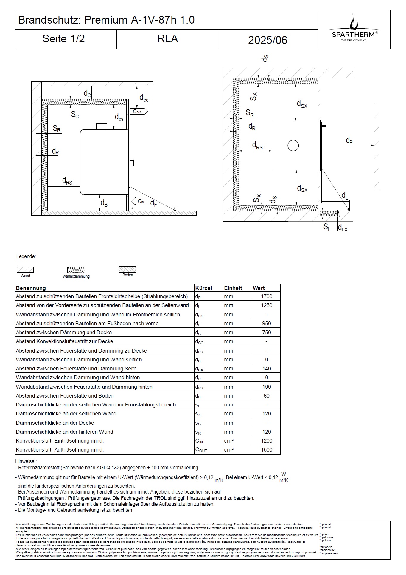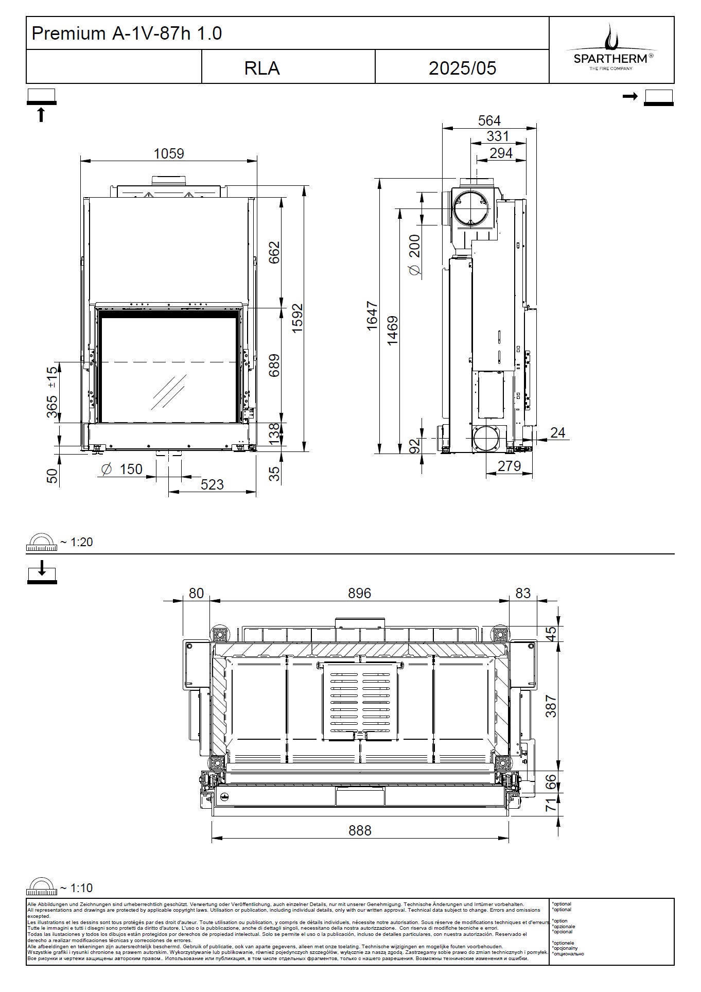 Чертёж каминной топки Spartherm, модель Premium A-1V-87h
