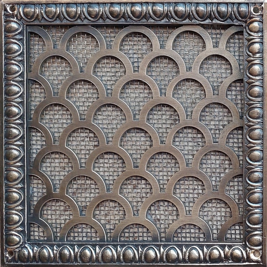 Основа решётки изготовлена по технологии лазерной резки металла. По периметру решётка декорирована литым багетом из латуни. Доступны различные варианты багета. Они отличаются по дизайну и по ширине.