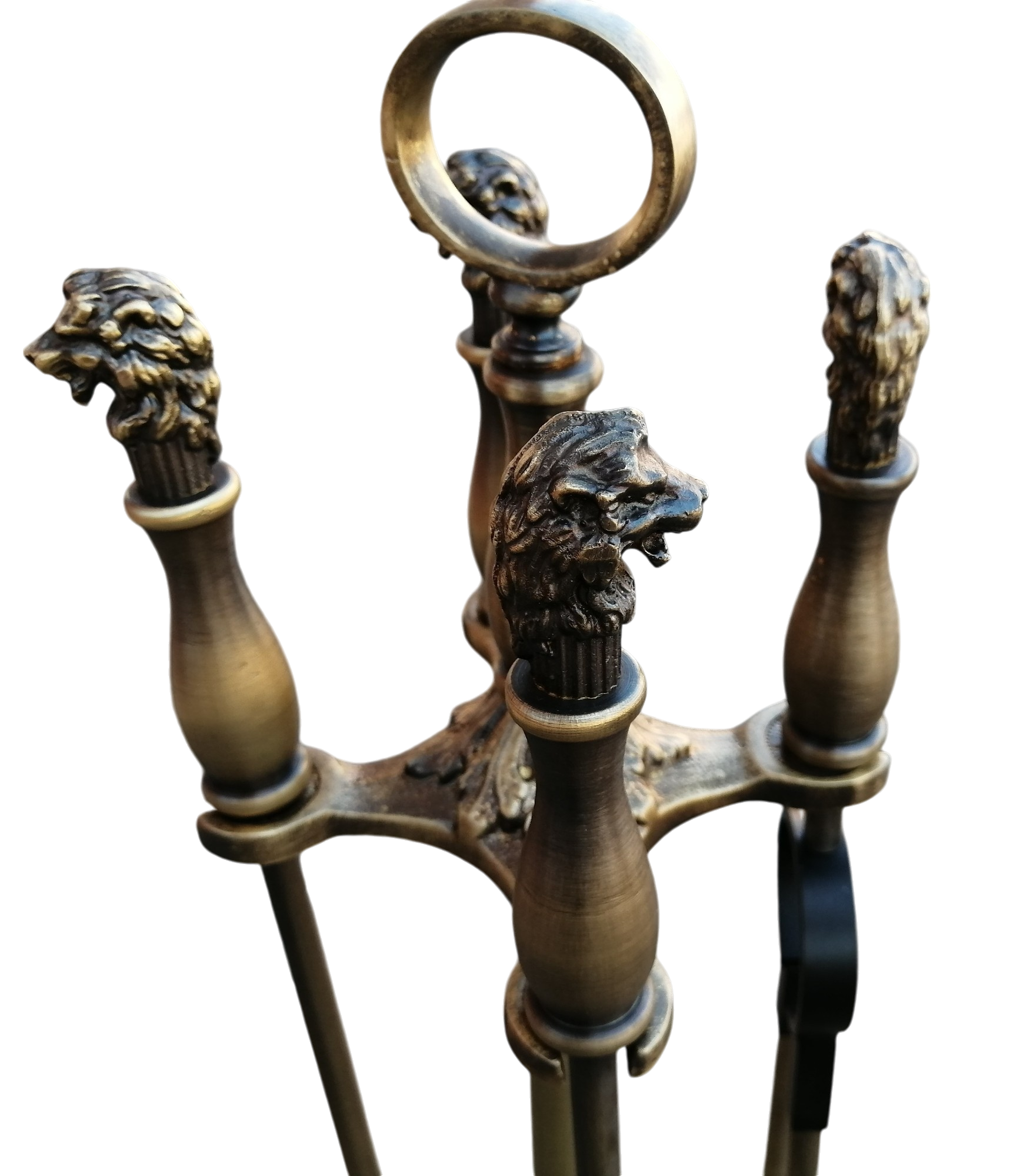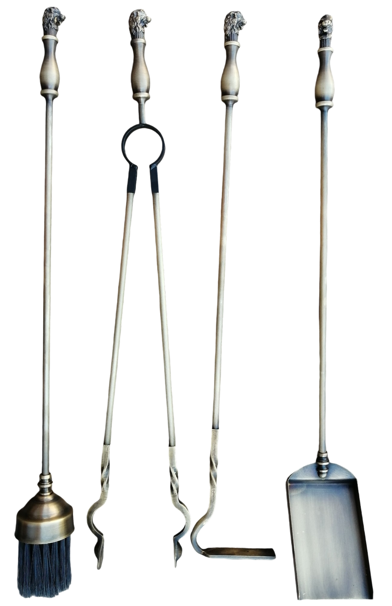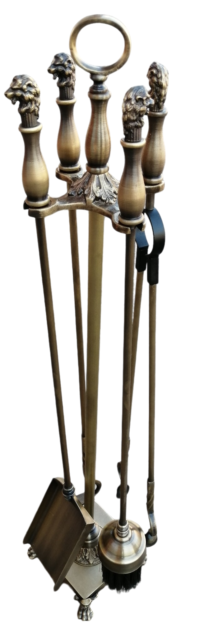 Отлитые из латуни головы и лапы львов, являющиеся элементами каминного набора «Квимал» (патина), смотрятся отлично и оригинально.