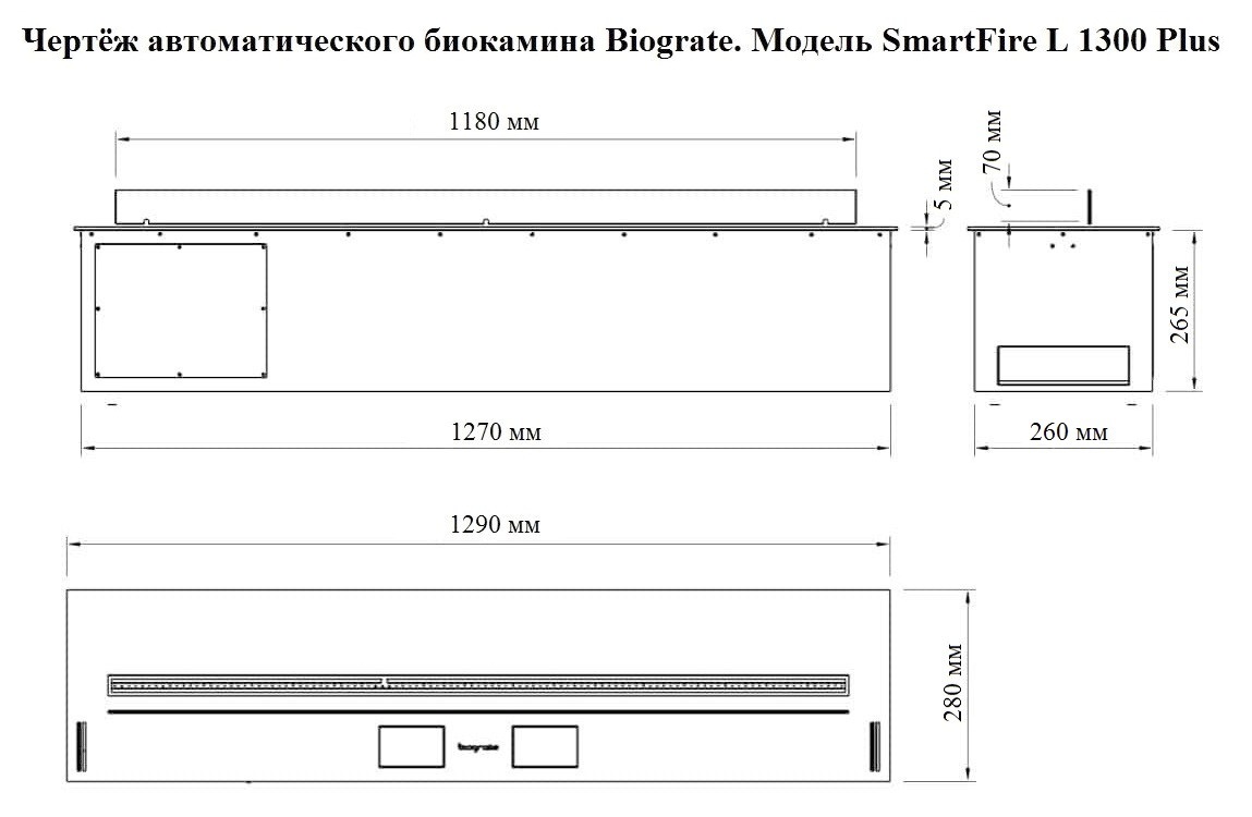 Чертёж автоматического биокамина Biograte. Модель SmartFire L 1300 plus