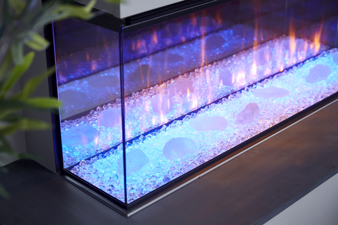 - 3 стиля камина: древесный, сланцевый и кристальный свет;