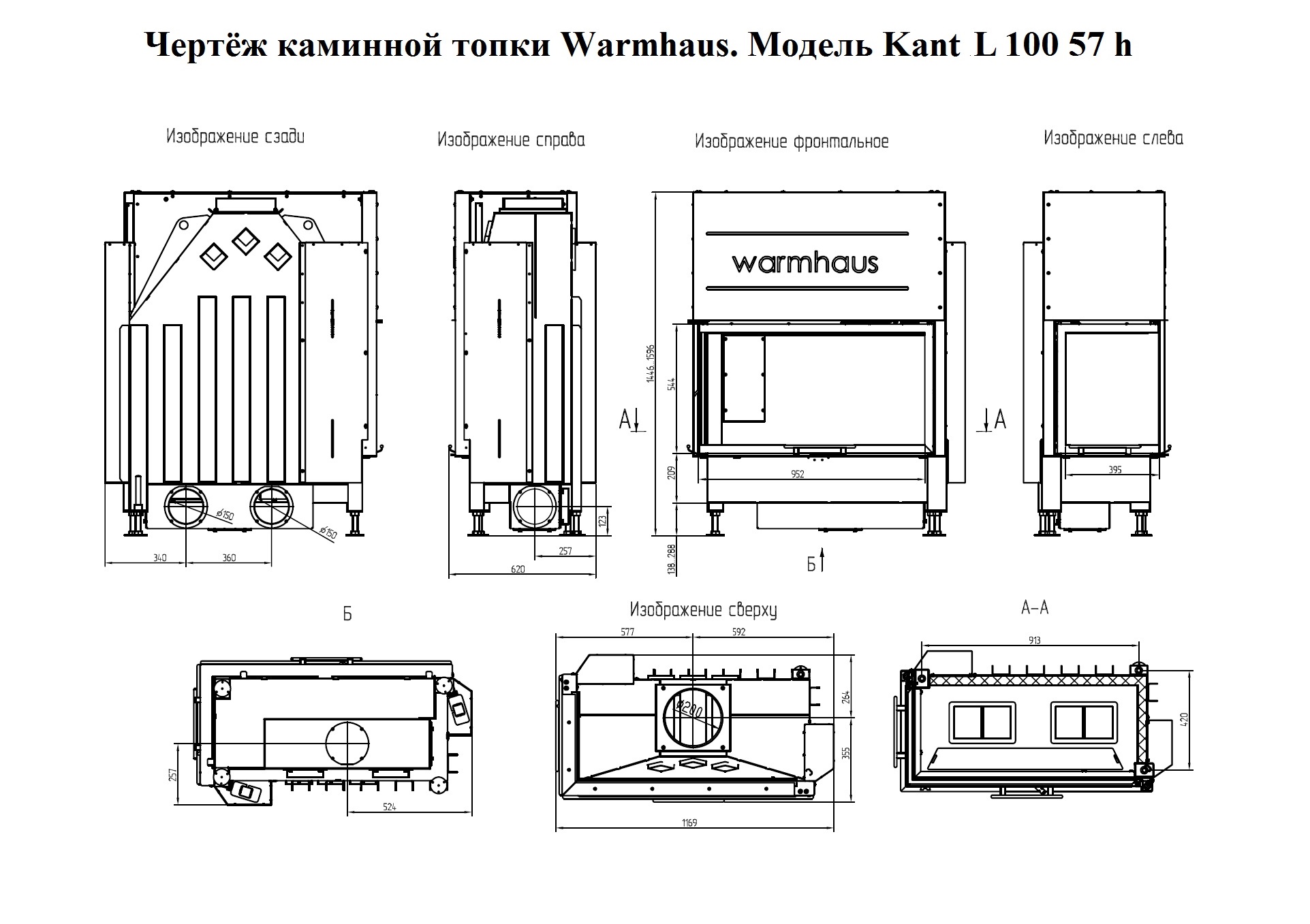 Чертёж каминной топки Warmhaus, модель Kant L 100 57 h