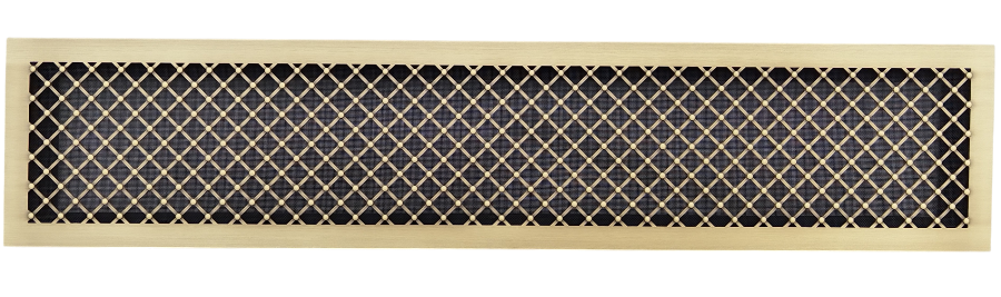 Вентиляционная решётка в стиле «Английский ампир» изготовлена из матовой латуни. Поверхность защищена 2-х компонентным лаком. Наружные размеры — 824*174 мм. Для установки в проём 800*150 мм. Добавлена мелкая стальная сетка чёрного цвета. С тыльной стороны решётки припаян патрубок. В комплекте прилагается монтажная рамка. В ней решётка фиксируется при помощи клипс.