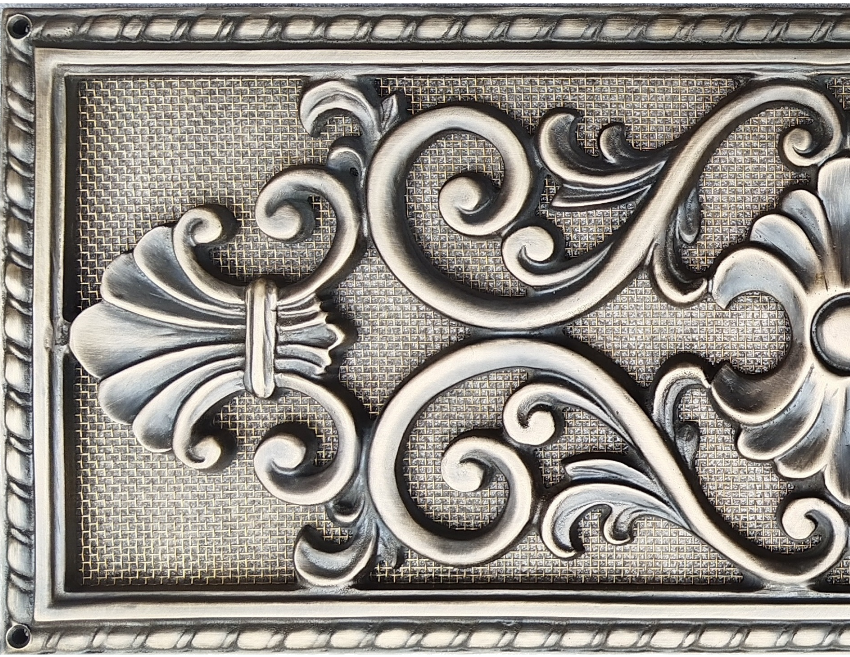 Литая вентиляционная решётка. Материал - латунь. На фото - патинированная «под бронзу». Поверхность может быть матовая и полированная.