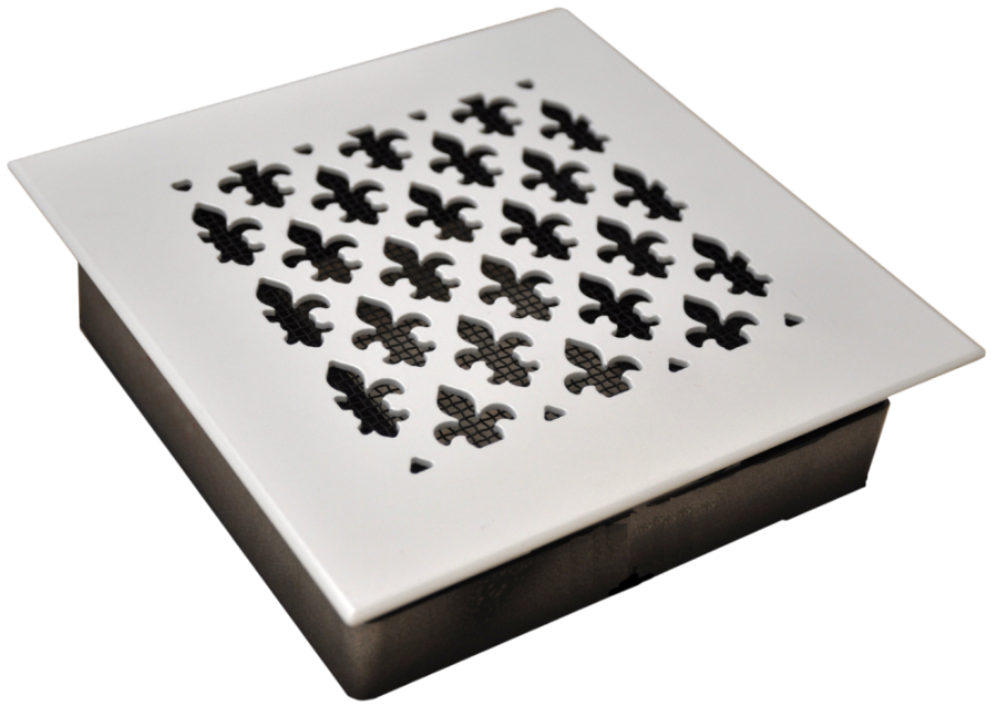 Эта декоративная вентиляционная решётка может быть изготовлена из различных материалов: сталь, латунь, нержавеющая сталь. Решётку из стали можно покрасить порошковой краской в нужный вам цвет (согласно спектра RAL Classic K7). По умолчанию используем МАТОВУЮ краску. Возможны различные способы крепления такой вентиляционной решётки. Это может быть накладная вентиляционная решётка или с крепежом на клипсы. Изготавливаются на заказ по индивидуальным размерам.