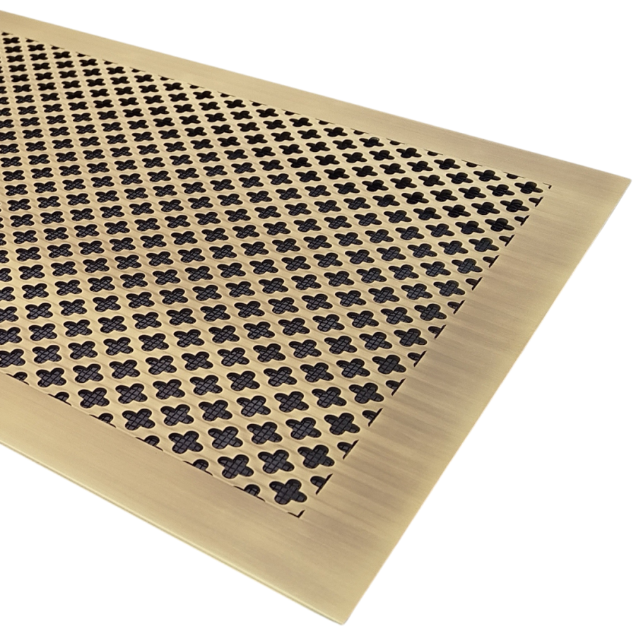 Поверхность латунных вент. решёток может быть матовая, полированная, патинированная «под бронзу». Возможна патина различных оттенков — от светлого к тёмному. Способы крепления такой вентиляционной решётки могут быть различные. Изготавливаются на заказ по индивидуальным размерам.