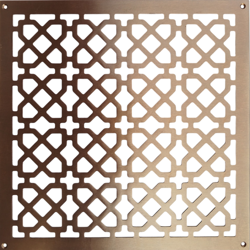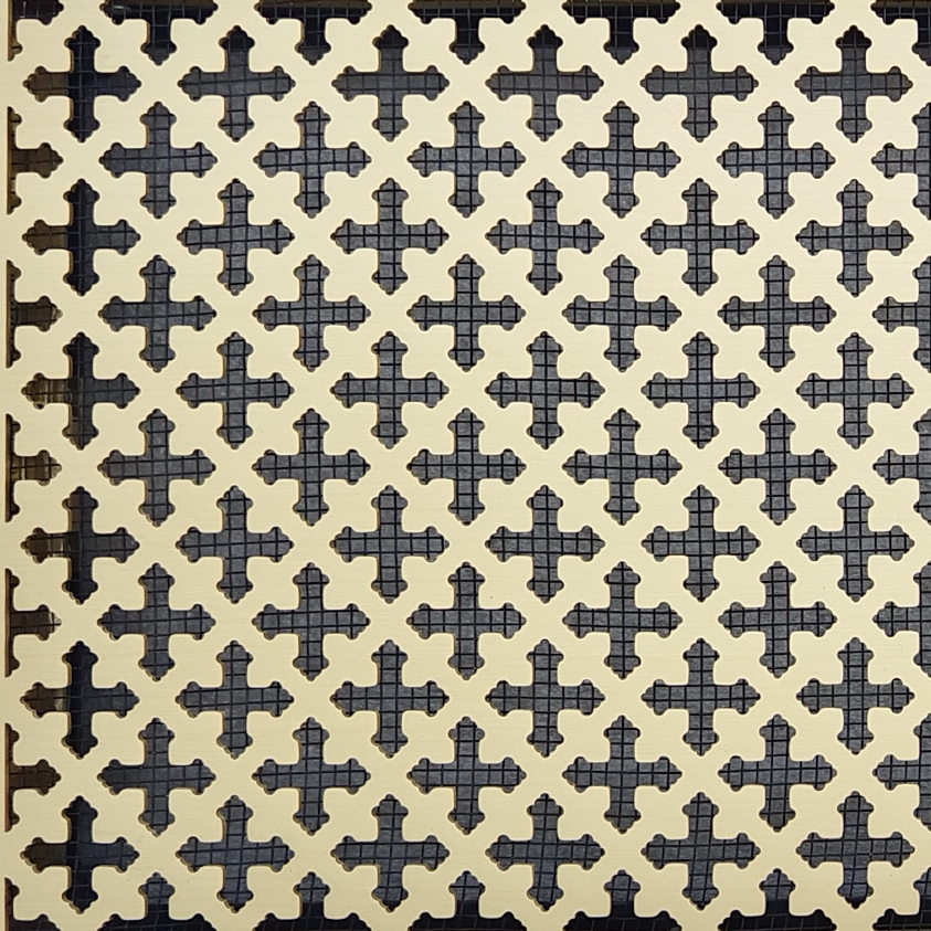 На этой странице сайта представлены основные орнаменты вентиляционных решёток. В зависимости от размеров решёток, можно масштабировать ячейки орнамента. Для небольшой по размеру решётки логично сделать ячейки поменьше. А на большой решётке или на декоративном экране будут лучше смотреться ячейки орнамента более крупного размера.